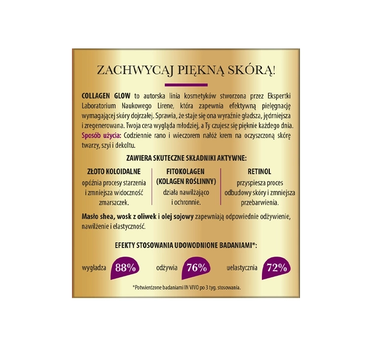 Die verjüngende Gesichtscreme für Tag und Nacht, Lirene Collagen Glow 70+, enthält: