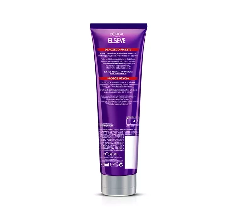L'Oreal Elseve Color Vive Purple Mask ist eine Haarmaske gegen Gelb- und Kupfertöne.
