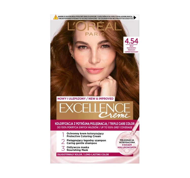 Die ausdrucksstarke, langahnaltende Farbe erreicht man dank der dreifachen Pflege der Strähne. Das Serum vor der Färbung schützt die Fasern während der Behandlung, reiche Creme lässt sie nicht beschädigen und die Spülung pflegt das Haar danach.