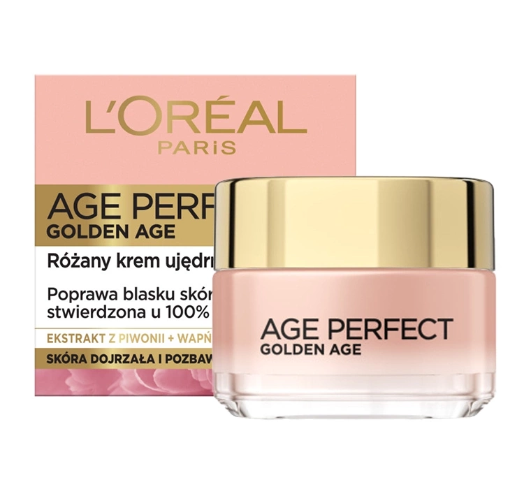 L’Oréal Paris Age Perfect Rosy Radiance Re-Fortifying Cream ist eine rosige straffende Tagescreme für 60+ Jahre, speziell entwickelt für reife und glanzlose Haut. Die Formel wurde für eine umfassende Pflege entwickelt – sie stellt die Hautelastizität wieder her, verbessert den Hautton und schützt vor lichtbedingter Hautalterung. Die 60+ Creme L’Oréal Paris Age Perfect Golden Age verschönert die Haut sofort dank einer einzigartigen Pigmentmischung, die den Teint sanft erhellt und ihm schon nach der ersten Anwendung Frische verleiht.