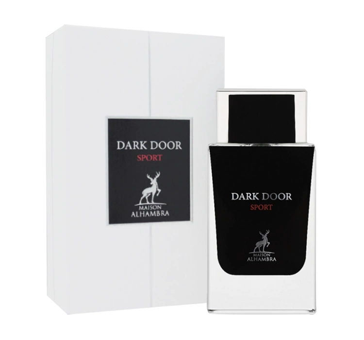Maison Alhambra Dark Door Sport ist in einem eleganten, sportlich-modernen Flakon verpackt, der den Geist dieser Komposition perfekt widerspiegelt.