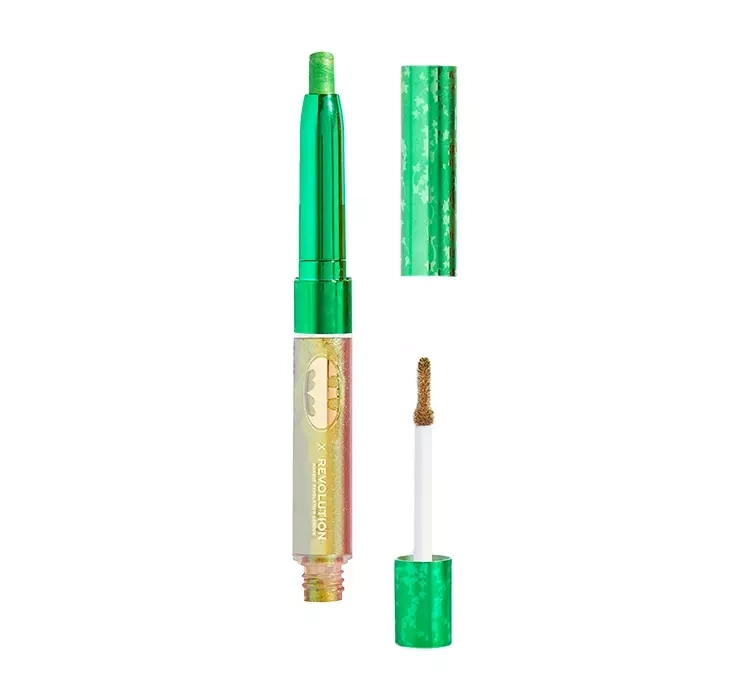 Zweifarbiger Lidschatten Makeup Revolution x DC Chrome Eyeshadow A New Leaf wurde von der farbenfrohen fiktiven Figur Poison Ivy inspiriert - einem bekannten Superschurken aus Gotham. Auf der einen Seite befindet sich ein metallischer Lidschatten in Stiftform, auf der anderen Seite ein glänzender Flüssiglidschatten. Dank dieses Duos metallischer Lidschatten wird dein Make-up atemberaubend und beeindruckend aussehen. Das Aussehen wird an das charakteristische Make-up erinnern, das mit Poison Ivy in Verbindung gebracht wird. Du kannst einen kreativen, interessanten und rebellischen Look kreieren. Diese Stilisierung wird dich sicherlich in Stimmung für Halloween versetzen.