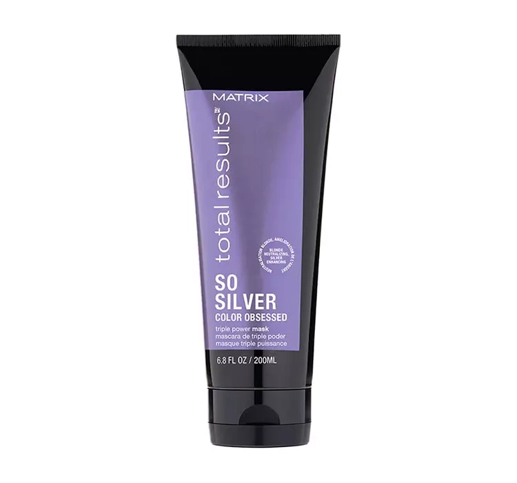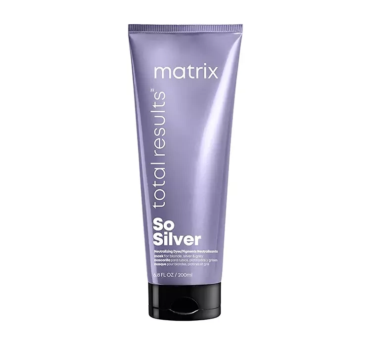 Matrix Total Results So Silver ist eine Linie professioneller Produkte zur Pflege von natürlichen, gefärbten und aufgehellten Haaren in hellblonden, platinblonden oder grauen Tönen. Die Produkte der So Silver-Serie enthalten eine Formel, die mit hochkonzentrierten violetten Pigmenten angereichert ist, die unerwünschte gelbe und kupferfarbene Töne neutralisieren und dabei helfen, einen kühlen Farbton der Haare zu bewahren. Die Produkte betonen die Farbtiefe und verleihen den Haaren Glanz und Strahlkraft.