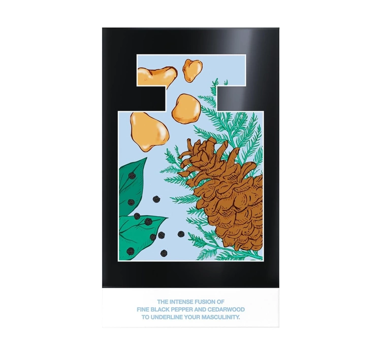 Im Herzen entfalten sich lebendige, warm-frische Akkorde, in denen sich weiße Seerose mit Virginischem Wacholder verbindet. Die Basisnote aus cremigem Sandelholz, sinnlichem Amber und rauchigem Patchouli verleiht dem Duft Tiefe und Beständigkeit. Das Ergebnis ist ein raffinierter Duftakkord, der mit Harmonie und Intensität besticht.