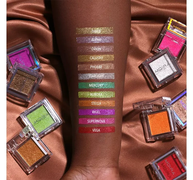 Die Moira Lucent Creme-Lidschatten-Kollektion besteht aus einer Reihe von Farben, die alle (wie auch die Namen) vom Kosmos inspiriert sind - darunter Sterne, Planeten, Kometen und astronomische Phänomene. Es gibt sie in wunderschönen, ultraglänzenden Farbtönen, die zu den meisten Anlässen passen. Ihre Anwendung verbessert definitiv die Stimmung und verleiht dem Styling eine interessante, strahlende Note. Mit dem Schimmerschatten von Moira Lucent kannst Du einen sanften oder dramatischen Look kreieren, indem Du ihn aufbaust und die Deckkraft erhöhst. Hervorragend geeignet für einen monochromen Augenaufschlag oder in Kombination mit anderen Farben aus der Kollektion und Deinen Favoriten - Augenstift, Eyeliner.