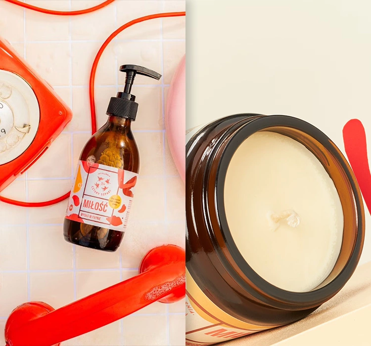 • Das romantische Liebes-Set von Mydlarnia Cztery Szpaki enthält eine Flüssigseife und eien Kerze. Die Produkte riechen unglaublich und verbinden die Noten von erfrischender Grapefruit mit Orient.
