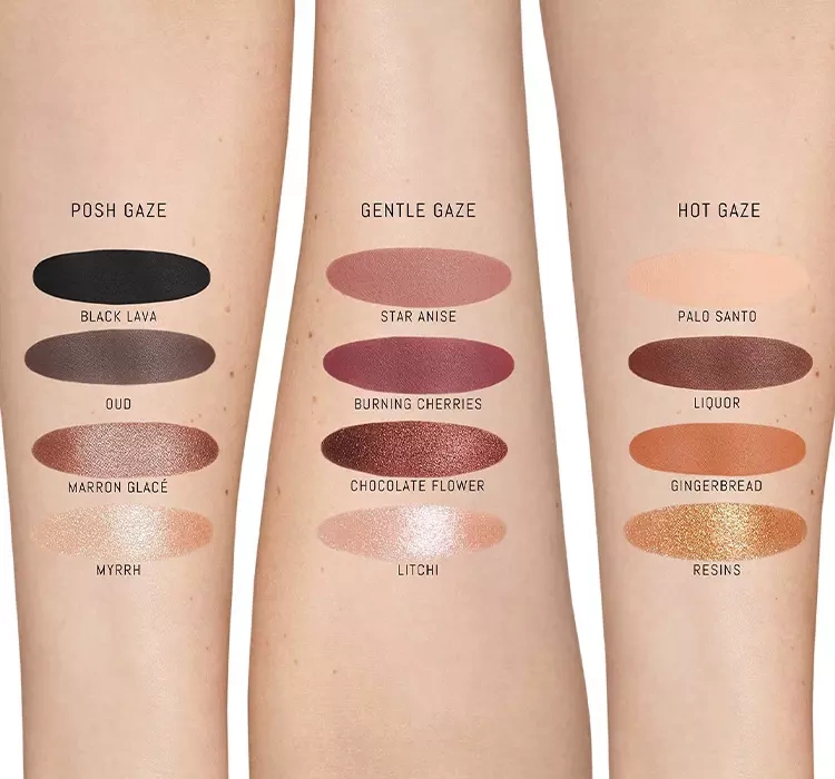 4 Mono-Lidschatten: palo santo, liquor, gingerbread und resins