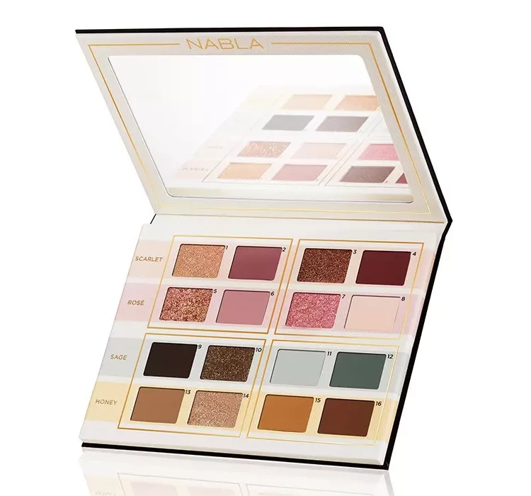 Die Palette Nabla Read My Mind verfügt über sechzehn Lidschatten, die man nach eigenem Wunsch mischen kann. Du kannst den vier Chromo-Linien folgen - Scarlet, Rose, Sage i Honey - für einen ausdrucksstarken Look, der auf harmonierten Tönen basiert. Wenn du dich stattdessen an den markierten Quadraten orientierst, erhältst du ein modernes, glamouröses Make-up. Natürlich kannst Du auch frei zwischen den Farben wechseln und sie nach Wunsch kombinieren, um deinen eigenen Schönheitscode zu erstellen, der deine Kreativität und Einzigartigkeit unterstreicht.