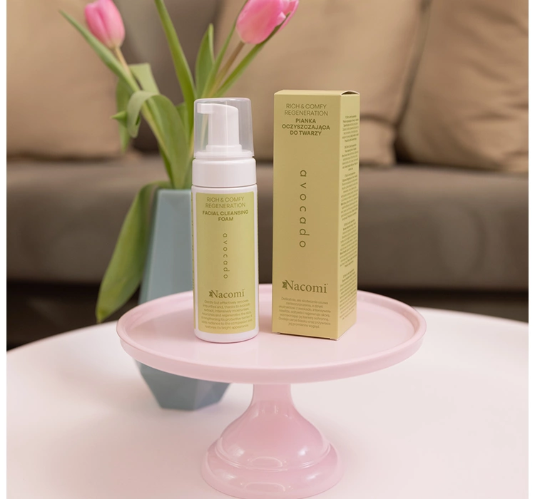 Für Personen, die nach effektiven Kosmetika für eine umfassende Pflege und intensive Regeneration der Haut suchen, hat die Marke Nacomi die einzigartige Serie Avocado RICH & COMFY REGENERATION kreiert. Diese Serie ist sowohl für junge Menschen als auch für diejenigen mittleren Alters gedacht, die mit Trockenheit und Dehydration der Haut, mattem Teint oder Irritationen kämpfen. Speziell ausgewählte aktive Inhaltsstoffe in den Produkten dieser Linie haben die Aufgabe, die natürliche Balance der Haut wiederherzustellen und ihr ein strahlendes und gesundes Aussehen zu verleihen.