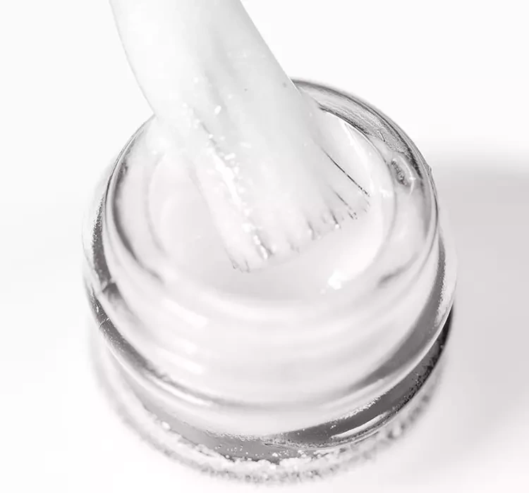 Auf den vorbereiteten Nagel einen Primer auftragen, dann eine dünne Schicht der gewählten Basis auftragen, in der Lampe härten.