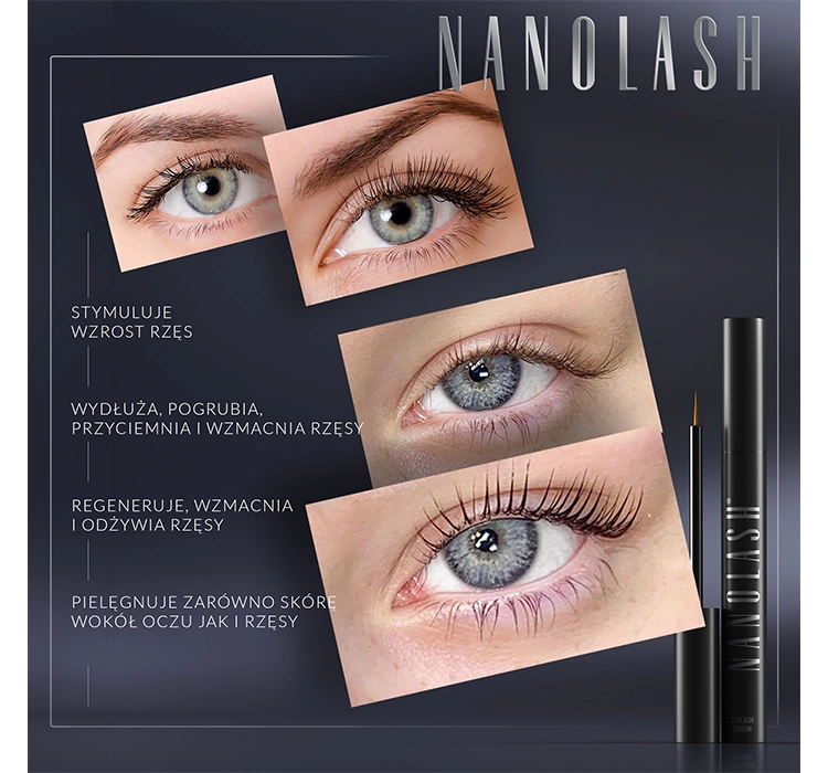 Das Nanolash Eyelash Serum freut sich großer Beliebtheit auf der ganzen Welt. Dank der komplexen und wirksamen Formel vertrauen ihm sowohl Kundinnen, als auch Spezialisten. Es wirkt schon seit der ersten Anwendung und mit jeder darauf folgenden, werden die Wimpern dicker und länger. Sie bekommen auch mehr Flexibilität, Schein und Farbtiefe.