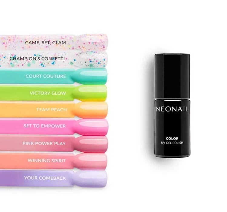 NeoNail Born to Win ist eine Sommerkollektion im Retro-Stil, die perfekt zu den aktuellen Trends passt und es ermöglicht, einzigartige und beeindruckende Stylings zu kreieren. Sie entführt uns in eine äußerst vielfältige Welt voller Pastellfarben, Konfetti-Dekorationen und innovativer thermischer Produkte, die ihre Farbe je nach Temperatur ändern.