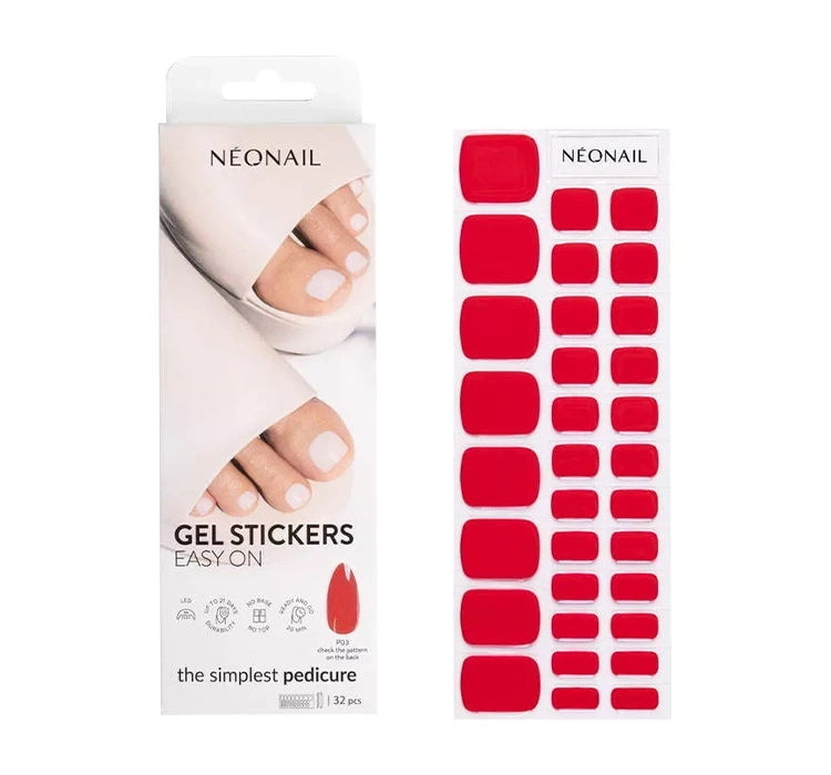 Die Verpackung der NeoNail Gel Stickers Easy On beinhaltet:32 Pediküre-Sticker in verschiedenen Größen, um sie optimal an die Nägel anzupassen;