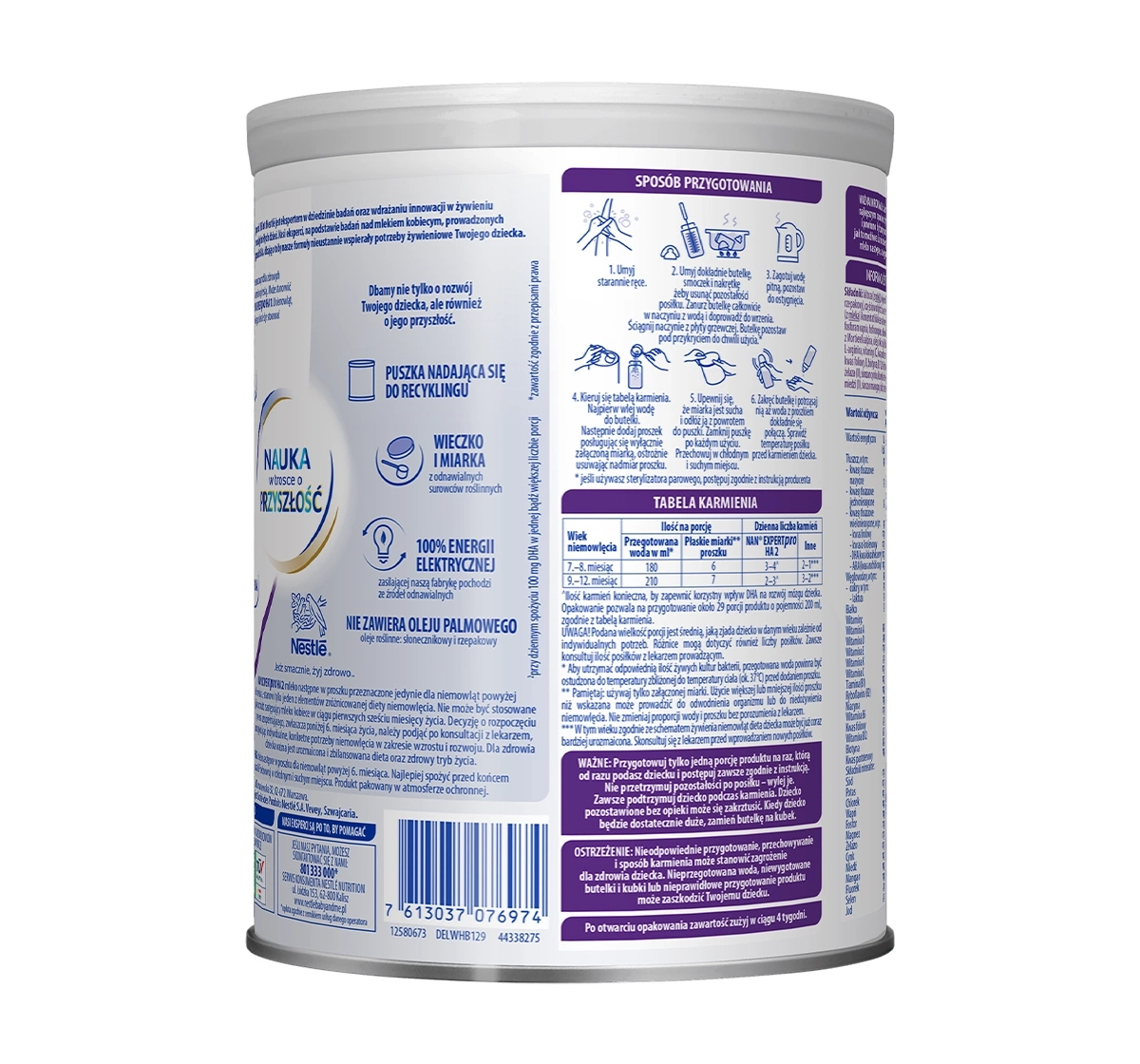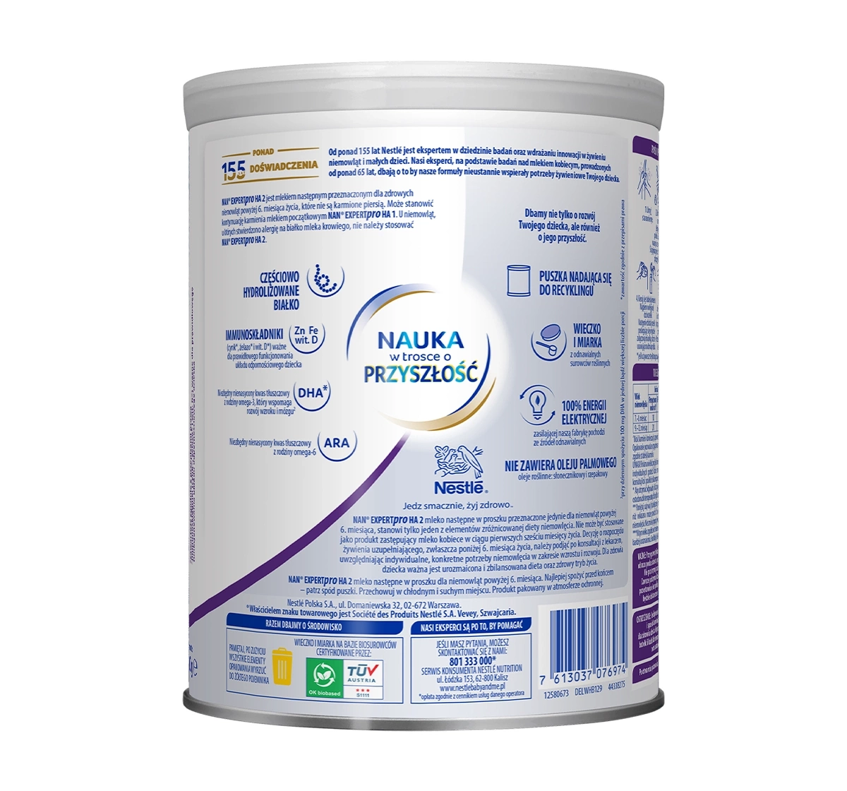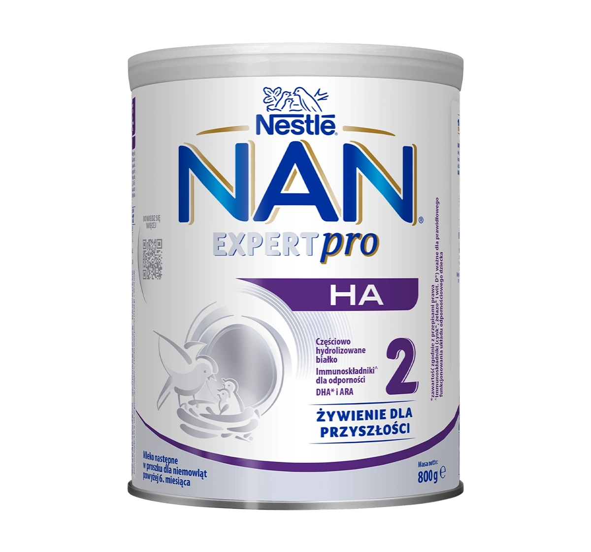 Die Formel von Nestlé NAN Expert Pro HA 2 basiert auf einer einzigartigen Kombination von Inhaltsstoffen, darunter teilweise hydrolysiertes Eiweiß, das durch ein von Nestlé entwickeltes zweistufiges Hydrolyseverfahren hergestellt wird, um das allergene Potenzial zu reduzieren. Es enthält außerdem wichtige Immunsystem-stärkende Nährstoffe wie Zink, Eisen und Vitamin D. Die enthaltenen DHA- und ARA-Fettsäuren (Omega-3 und Omega-6) unterstützen die Entwicklung der Sehkraft und kognitiver Funktionen. Zudem ist das Produkt mit pflanzlichen Ölen wie Sonnenblumen- und Rapsöl angereichert und enthält kein Palmöl.