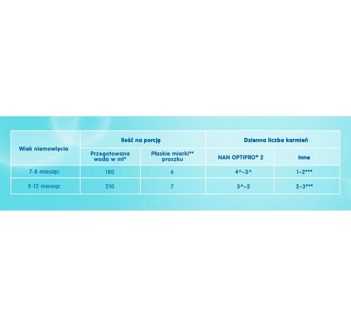 Nestlé NAN Optipro 2 ist ein speziell entwickeltes Folgemilchpulver für Säuglinge ab dem 6. Lebensmonat, die nicht gestillt werden. Dank jahrelanger Forschung zur Muttermilch haben Nestlé-Experten eine einzigartige Rezeptur entwickelt, die den Ernährungsbedürfnissen von Kleinkindern in dieser wichtigen Entwicklungsphase entspricht. NAN Optipro 2 unterstützt gesundes Wachstum, Entwicklung und die normale Funktion des Immunsystems des Kindes.