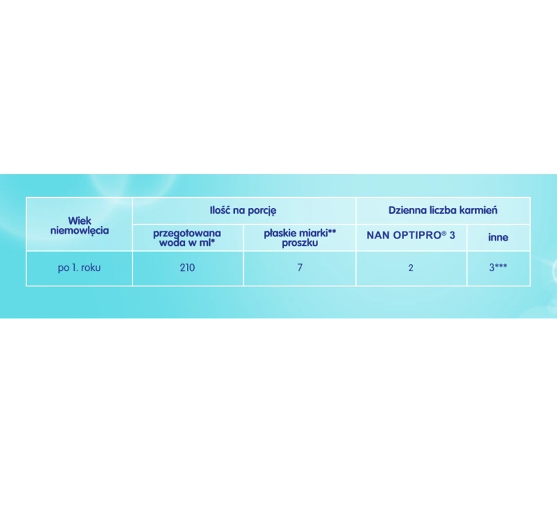 Nestlé Nan Optipro 3 ist die richtige Wahl für Eltern, die ein ausgewogenes modifiziertes Milchpulver suchen, das den Bedürfnissen ihres Kindes ab dem 1. Lebensjahr gerecht wird. Es eignet sich hervorragend als Bestandteil der täglichen Mahlzeiten, fördert das Wachstum und liefert alle notwendigen Nährstoffe.