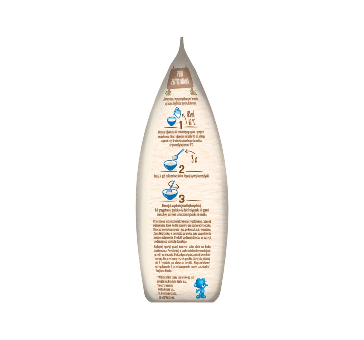 Die Formel des Nestlé Proste Zboża Reisbreis enthält 12 Vitamine und Mineralstoffe, darunter die Vitamine A und C, die das Immunsystem unterstützen, sowie Eisen, das für die kognitive Entwicklung wichtig ist. Der Brei ist frei von Zuckerzusatz, Palmöl und Gluten, was ihn zu einer sicheren und gesunden Wahl für Kinder macht. Außerdem enthält er, gemäß den gesetzlichen Vorschriften, keine Konservierungsstoffe oder künstliche Farbstoffe, was für höchste Qualität der Mahlzeit sorgt.