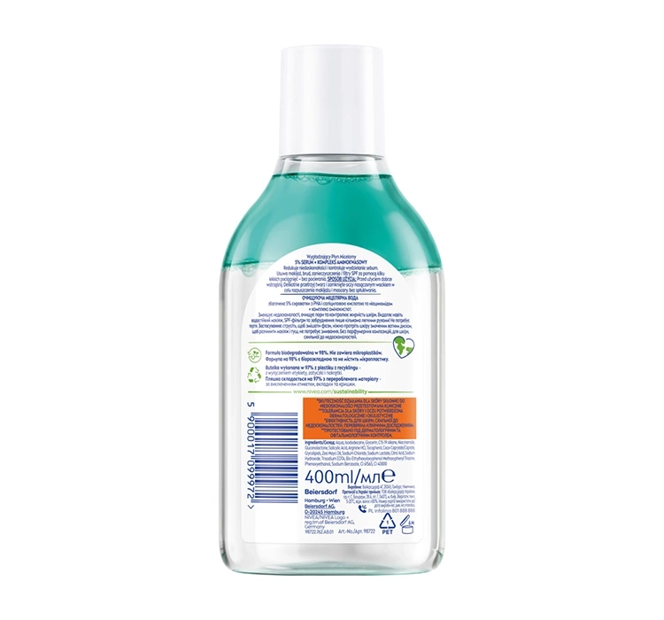 Das Mizellenwasser mit PHA, Salicylsäure und Niacinamid von NIVEA Derma Skin Clear ist zu 98% biologisch abbaubar und enthält kein Mikroplastik. Bei regelmäßiger Anwendung sorgt es für sichtbar reinere Haut – ohne Spannungsgefühl oder Irritationen. Eine ideale Wahl für alle, die eine wirksame und zugleich sanfte Lösung für das tägliche Abschminken und die Pflege unreiner Haut suchen.