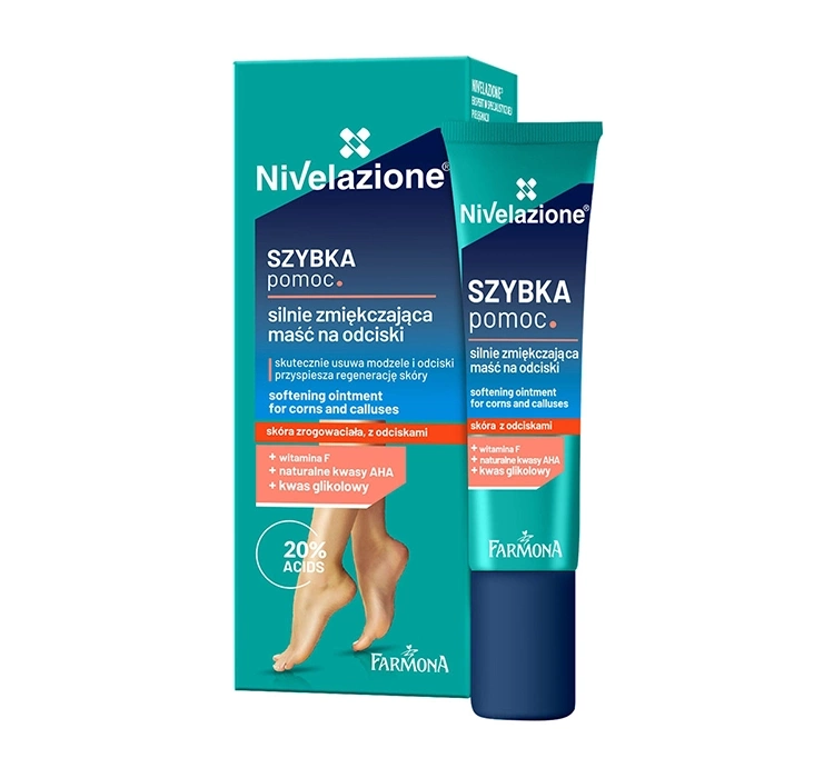 Die regelmäßige Anwendung der stark erweichenden Salbe gegen Schwielen und Hühneraugen Nivelazione garantiert gepflegte, gesunde und weiche Füße. Das Produkt beseitigt nicht nur bestehende Probleme, sondern beugt auch ihrem Wiederauftreten vor und unterstützt die tägliche Pflege. Dank ihrer Wirksamkeit und konzentrierten Formel ist sie die ideale Lösung für eine Heimpflegekur für alle, die ihren Füßen schnell und komfortabel ein schönes Aussehen zurückgeben möchten.