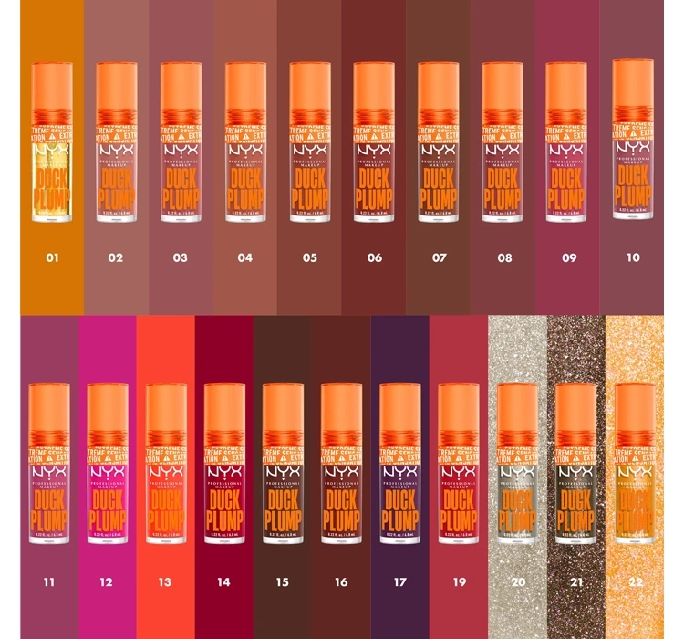Die Marke NYX Professional Makeup weiß, wie wichtig die Auswahl des richtigen Farbtons und ein inklusiver Ansatz gegenüber den Kunden sind. Daher ist Duck Plumping Lip Gloss in 18 Farbvarianten erhältlich, darunter 2 transparente und 16 intensiv pigmentierte. Jede Person wird etwas Passendes finden, unabhängig von Anlass oder Stimmung.