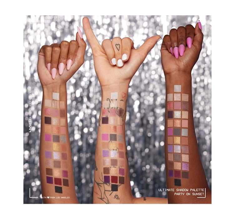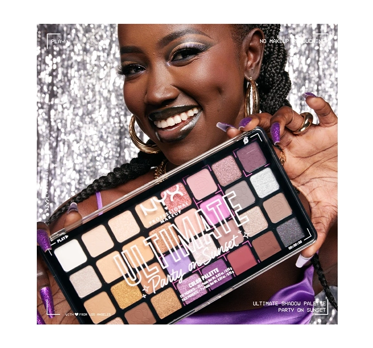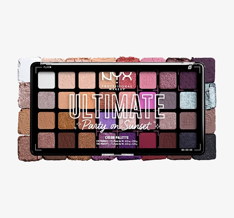 Die NYX Ultimate Party on Sunset Lidschatten-Palette ist ein farbenfrohes Angebot, das an Sommerstimmungen erinnert. Sie finden darin alltägliche Beige- und Brauntöne sowie gewagte Akzente mit Violett, Pfirsich oder Silber. Es ist ein Angebot, das Ihrem Make-up einen angenehmen Hauch von Frische verleiht. Schon beim ersten Blick auf die gesamte Palette und ihre Farbhistorie werden Sie Lust haben, etwas Einzigartiges auf Ihren Augen zu kreieren. Die Lidschatten- und Gesichtspigment-Palette Party on Sunset ist limitiert und wurde zum Geburtstag der Marke NYX kreiert. Die große Palette enthält 32 Farbvarianten, sowohl matte als auch glänzende.