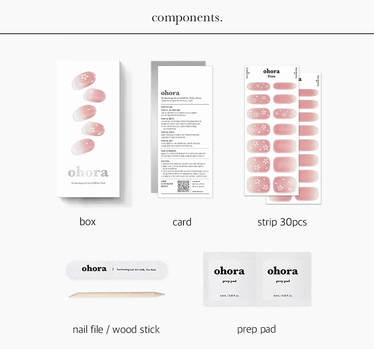 Ein traditionelles Hybrid-Maniküre und -Pediküre, obwohl haltbar, erfordert oft einen zeitaufwändigen Prozess und präzise Arbeit. Die Marke Ohora, als Vorreiter in der Branche, hat sich zum Ziel gesetzt, die Zeit für ein professionelles Nagelstyling zu reduzieren, während Haltbarkeit und Ästhetik erhalten bleiben. So entstand die schnelle UV-Hybrid-Nagelsticker, der Schlüssel zu einem schönen Maniküre, Zeitersparnis und gesunder Nagelplatte. Die Ohora-Nagelsticker bestehen aus drei Schichten traditionellen Hybrid-Lacks, der zu 60% ausgehärtet ist, was sie extrem flexibel macht und sich an verschiedene Formen und Größen der Nagelplatte anpasst.