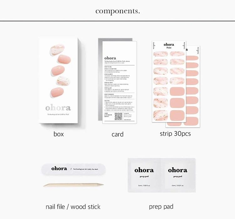 Ein traditionelles Hybrid-Maniküre und -Pediküre, obwohl haltbar, erfordert oft einen zeitaufwändigen Prozess und präzise Arbeit. Die Marke Ohora, als Vorreiter in der Branche, hat sich zum Ziel gesetzt, die Zeit für ein professionelles Nagelstyling zu reduzieren, während Haltbarkeit und Ästhetik erhalten bleiben. So entstand die schnelle UV-Hybrid-Nagelsticker, der Schlüssel zu einem schönen Maniküre, Zeitersparnis und gesunder Nagelplatte. Die Ohora-Nagelsticker bestehen aus drei Schichten traditionellen Hybrid-Lacks, der zu 60% ausgehärtet ist, was sie extrem flexibel macht und sich an verschiedene Formen und Größen der Nagelplatte anpasst.