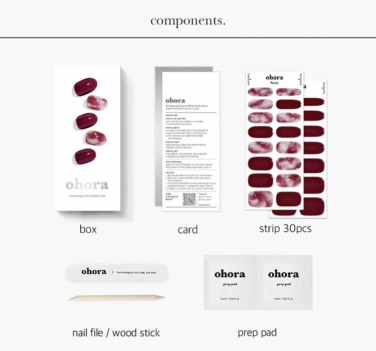Ein traditionelles Hybrid-Maniküre und -Pediküre, obwohl haltbar, erfordert oft einen zeitaufwändigen Prozess und präzise Arbeit. Die Marke Ohora, als Vorreiter in der Branche, hat sich zum Ziel gesetzt, die Zeit für ein professionelles Nagelstyling zu reduzieren, während Haltbarkeit und Ästhetik erhalten bleiben. So entstand die schnelle UV-Hybrid-Nagelsticker, der Schlüssel zu einem schönen Maniküre, Zeitersparnis und gesunder Nagelplatte. Die Ohora-Nagelsticker bestehen aus drei Schichten traditionellen Hybrid-Lacks, der zu 60% ausgehärtet ist, was sie extrem flexibel macht und sich an verschiedene Formen und Größen der Nagelplatte anpasst.