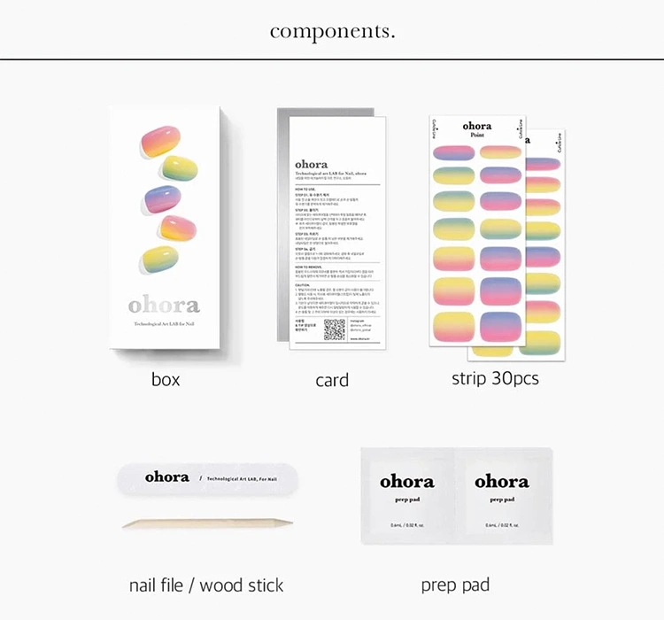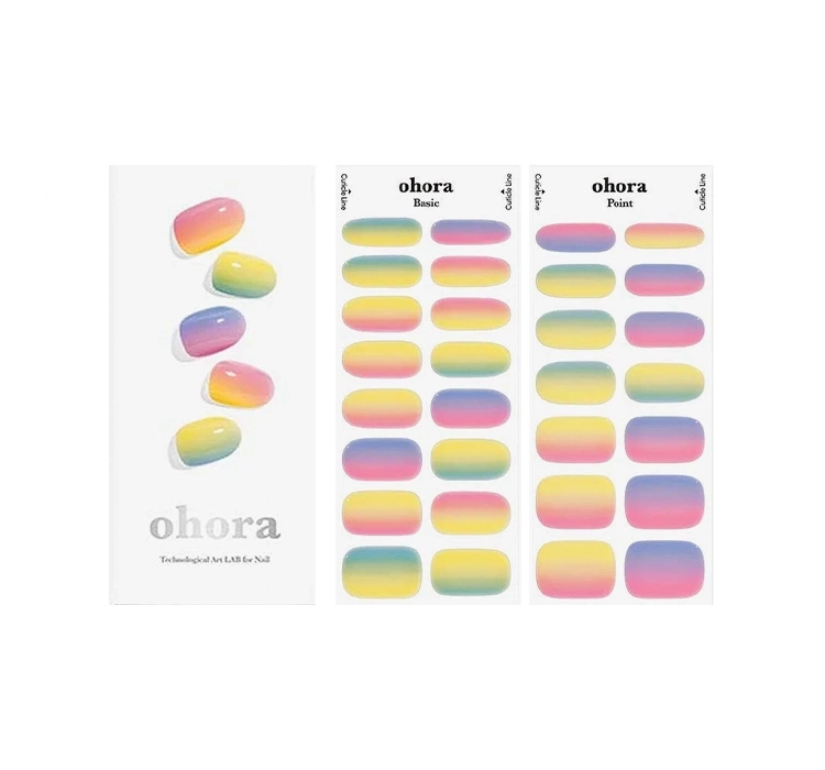 Ein traditionelles Hybrid-Maniküre und -Pediküre, obwohl haltbar, erfordert oft einen zeitaufwändigen Prozess und präzise Arbeit. Die Marke Ohora, als Vorreiter in der Branche, hat sich zum Ziel gesetzt, die Zeit für ein professionelles Nagelstyling zu reduzieren, während Haltbarkeit und Ästhetik erhalten bleiben. So entstand die schnelle UV-Hybrid-Nagelsticker, der Schlüssel zu einem schönen Maniküre, Zeitersparnis und gesunder Nagelplatte. Die Ohora-Nagelsticker bestehen aus drei Schichten traditionellen Hybrid-Lacks, der zu 60% ausgehärtet ist, was sie extrem flexibel macht und sich an verschiedene Formen und Größen der Nagelplatte anpasst.