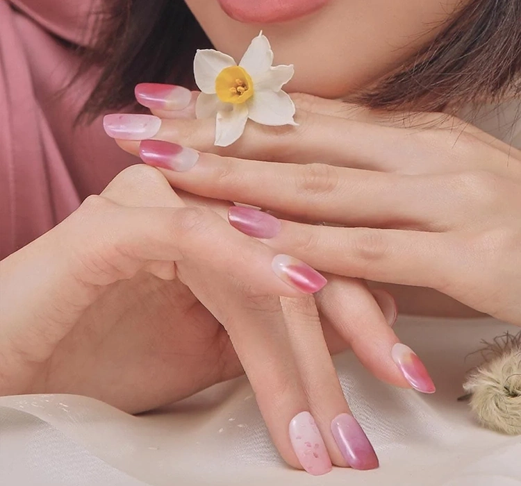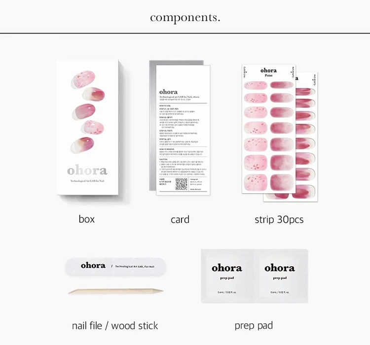 Ein traditionelles Hybrid-Maniküre und -Pediküre, obwohl haltbar, erfordert oft einen zeitaufwändigen Prozess und präzise Arbeit. Die Marke Ohora, als Vorreiter in der Branche, hat sich zum Ziel gesetzt, die Zeit für ein professionelles Nagelstyling zu reduzieren, während Haltbarkeit und Ästhetik erhalten bleiben. So entstand die schnelle UV-Hybrid-Nagelsticker, der Schlüssel zu einem schönen Maniküre, Zeitersparnis und gesunder Nagelplatte. Die Ohora-Nagelsticker bestehen aus drei Schichten traditionellen Hybrid-Lacks, der zu 60% ausgehärtet ist, was sie extrem flexibel macht und sich an verschiedene Formen und Größen der Nagelplatte anpasst.