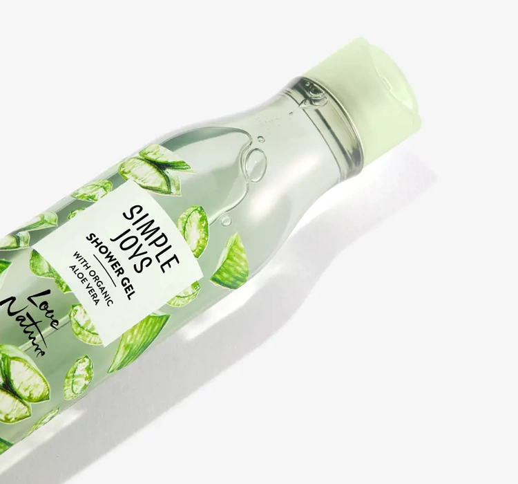 Das Duschgel mit Bio-Aloe Simple Joys Love Nature duftet angenehm frisch nach Aloe und hüllt den Körper in einen subtilen Duft. Die Verpackung besteht aus 100 % recyceltem Kunststoff, was das Engagement der Marke für nachhaltige Entwicklung unterstreicht.