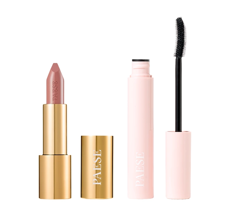 • Das Geschenk-Make-up-Set von Paese enthält die verlängernde Mascara Cheeky Mascara Black und den cremigen Lippenstiftstift NUDElightful 400 Beige Marshmallow.