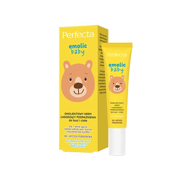 Die emolliente Gesichts- und Körpercreme Perfecta Emolic Baby wurde speziell für die empfindliche Haut von Kindern entwickelt. Sie eignet sich hervorragend für die tägliche Pflege trockener, zu Allergien und Reizungen neigender Haut, versorgt intensiv mit Feuchtigkeit und beruhigt, um langanhaltenden Komfort und Geschmeidigkeit zu gewährleisten. Ihre nährende Formel unterstützt die natürliche Hautbarriere, schützt vor Feuchtigkeitsverlust und schädlichen Umwelteinflüssen.