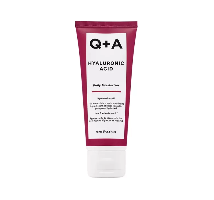 Feuchtigkeitsspendende Gesichtscreme mit Hyaluronsäure Q+A Hyaluronic Acid Daily Moisturiser ist für alle Hauttypen geeignet, insbesondere für trockene, dehydrierte oder reife Haut. Sie kann in die tägliche Pflegeroutine integriert werden, sowohl morgens als auch abends. Die universell pflegende Creme von Q+A sollte immer auf gereinigte Haut aufgetragen werden, gegebenenfalls nach einem Serum, z.B. aus der Q+A Hyaluronic Acid Serie. Sie strafft sichtbar, glättet, macht die Haut weich und hemmt den Alterungsprozess der Haut. Die Creme enthält synergistisch wirkende Säuren – Hyaluronsäure und Polyglutaminsäure, die gemeinsame feuchtigkeitsspendende Eigenschaften haben. Sie bilden eine Schutzbarriere, die den Verlust von wertvollem Wasser aus der Haut verhindert. Sie wurde zusätzlich mit Reiskleie-Extrakt angereichert, der reich an Vitamin E und Antioxidantien ist. Das Gesicht gewinnt an Glätte, Geschmeidigkeit, Feuchtigkeit und einem jugendlichen Aussehen.