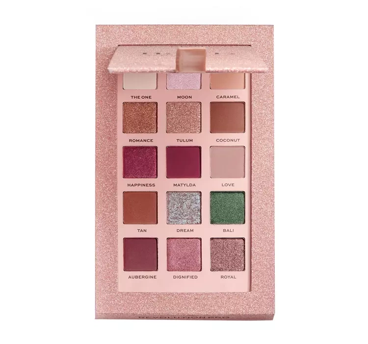 Die Revolution PRO x Nath Eyeshadow Palette I’m Not Afraid to Sparkle enthält 15 Lidschatten mit unterschiedlichem Finish. Matte, schimmernde und metallische Nuancen können beliebig gemischt und geblendet werden. Die Schatten zeichnen sich durch eine hohe Pigmentierung aus und lassen sich leicht auf die Augenlider einreiben. Richtig ausgewählte Farbgebung ermöglicht es Dir, ein beliebiges Make-up zu erstellen.