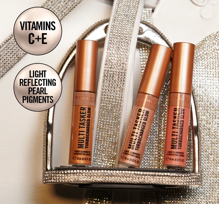 Die Formel von Rimmel Multi-Tasker Turbocharged Glow ist mit lichtreflektierenden Perlen angereichert, die den Teint sofort zum Strahlen bringen, sowie mit einem Vitamin-C- und -E-Komplex, der die Haut mit Feuchtigkeit versorgt und ihre Regeneration unterstützt. Die leichte, flüssig-cremige Konsistenz ermöglicht eine präzise Anwendung und einfaches Verblenden, während mineralische Pigmente die Farbe gleichmäßig verteilen und die natürlichen Gesichtskonturen betonen.