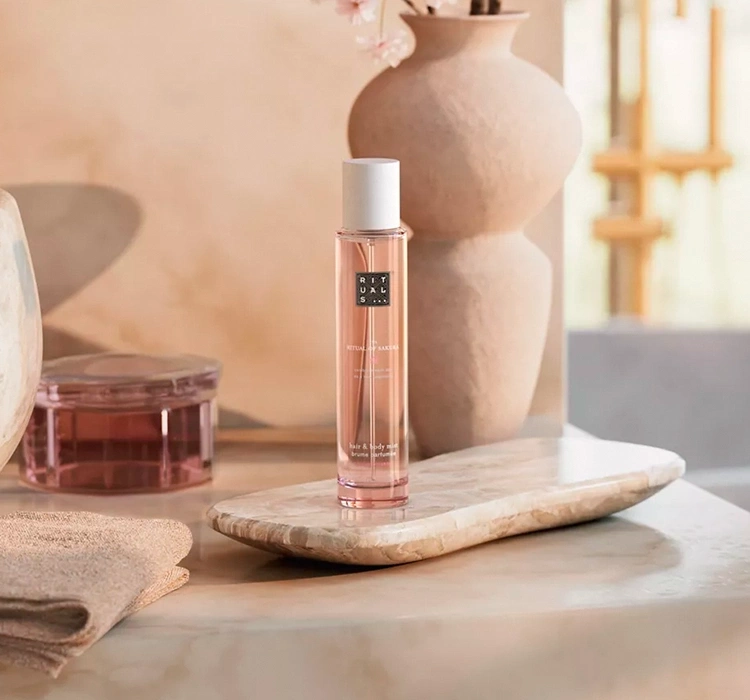 Inspiration für das Rituals The Ritual of Sakura Spray sind die zarten Blüten des Kirschbaums Sakura, die in der japanischen Kultur für Erneuerung, Reinheit und die vergängliche Schönheit des Lebens stehen. Als „Frühling-Schnee“ bezeichnet, verzaubern die Kirschblüten mit einem feinen, blumigen Duft, der die Sinne beruhigt und an natürliche Eleganz und Ruhe erinnert. Der Duft hält viele Stunden auf der Haut und hüllt sie in eine sanfte Süße und blumige Frische. Die Formel wurde zudem mit Reismilch angereichert, die für ihre weichmachenden und glättenden Eigenschaften bekannt ist. Sie wirkt auch beruhigend und erfrischend auf das Haar, ohne es auszutrocknen oder stumpf wirken zu lassen.