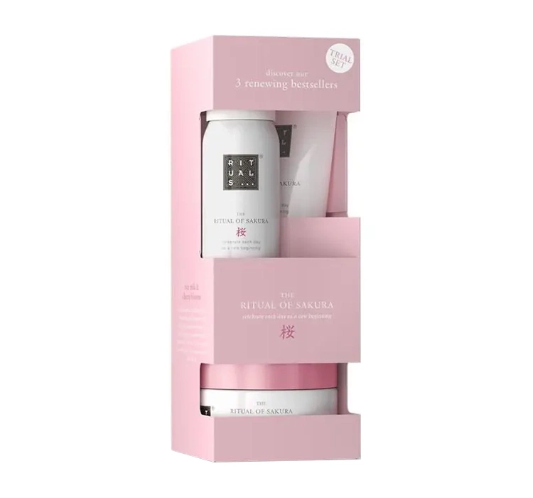 Die Kosmetikprodukte der Serie The Ritual of Sakura sind mit Kirschblütenextrakt und Reismilch angereichert, die der Haut ein seidig glattes Gefühl und einen zarten, blumigen Duft verleihen. Dieses Set ist die perfekte Wahl für alle, die ihre Haut pflegen und sich gleichzeitig mit einem angenehmen Aroma umhüllen möchten – für Harmonie und Wohlbefinden.