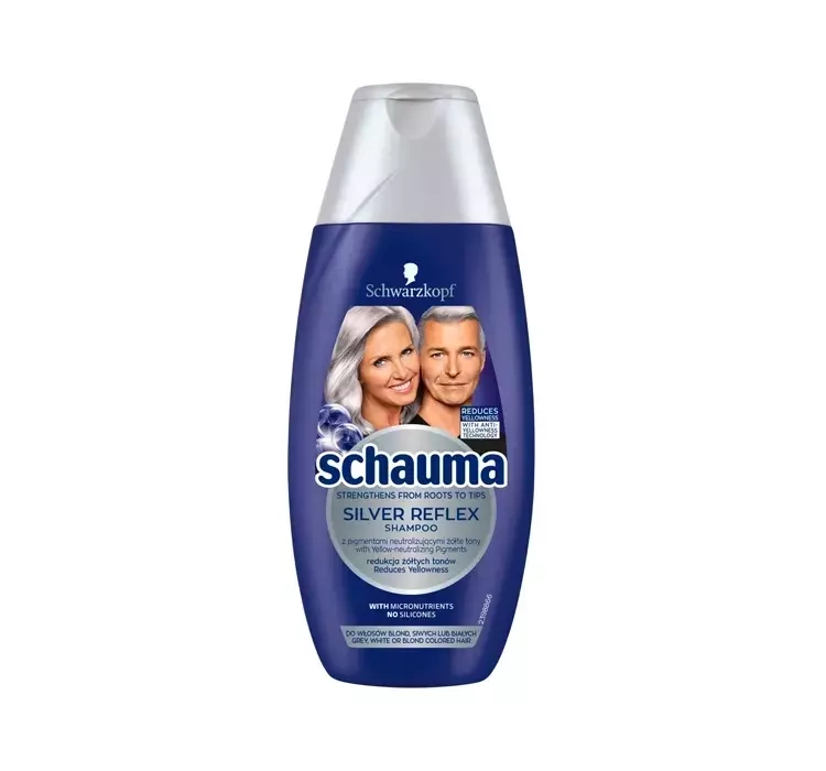 Das Schauma Silver Reflex Shampoo ist ein Kosmetikprodukt zur Reinigung und Pflege von blondem, grauem und weißem Haar. Seine Formel wurde mit violetten Pigmenten sowie Extrakten aus schwarzen Johannisbeeren angereichert. Diese Inhaltsstoffe neutralisieren effektiv den gelben Farbton des Haares und fügen subtile kühle Töne hinzu.