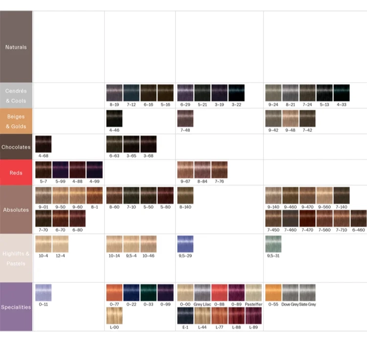 Permanente Colorationscreme. SICHERHEITSANWEISUNGEN: Nur für den professionellen Gebrauch. Haarfärbemittel können starke allergische Reaktionen hervorrufen. Bitte lesen und befolgen Sie die Anweisungen. Nicht geeignet für Personen unter 16 Jahren. Temporäre Tattoos mit schwarzem Henna können das Allergierisiko erhöhen. Haare nicht färben, wenn: – ein Hautausschlag im Gesicht vorhanden ist oder die Kopfhaut empfindlich, gereizt oder verletzt ist, – jemals eine Reaktion auf Haarfärbemittel aufgetreten ist, – in der Vergangenheit eine Reaktion auf ein temporäres Tattoo mit schwarzem Henna aufgetreten ist. Außer Reichweite von Kindern aufbewahren. Enthält: siehe Angaben auf der Verpackung. Augenkontakt vermeiden. Bei Kontakt mit den Augen sofort mit Wasser ausspülen. Nicht zur Färbung von Augenbrauen oder Wimpern verwenden. Nach der Anwendung das Haar gründlich ausspülen. Schutzhandschuhe verwenden.