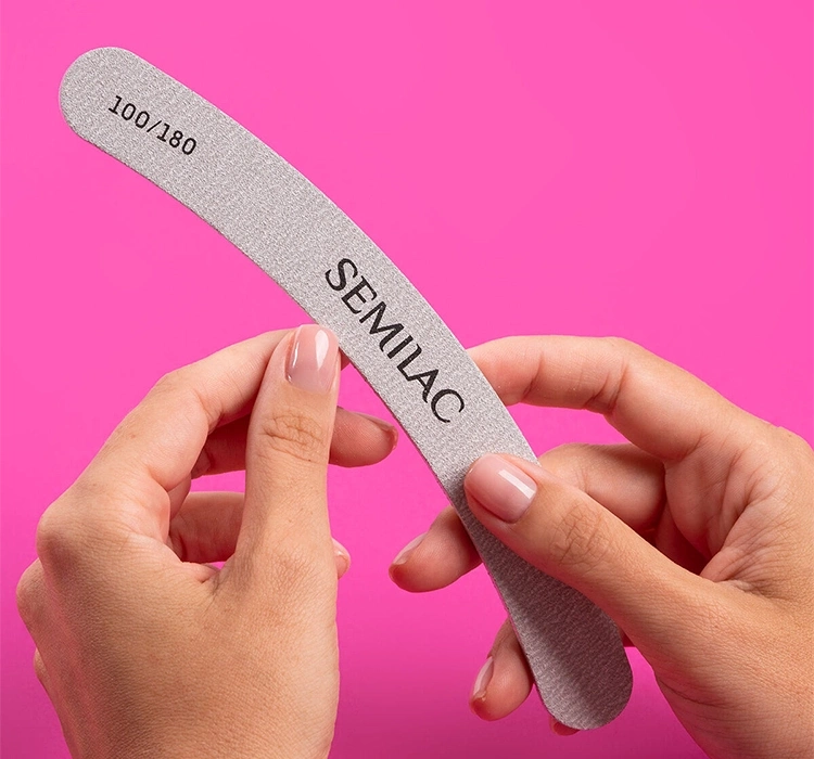 Eine Feile in besonderer, gebogener Form, ermöglicht den Zugang zu schwerzugänglichen Stellen an Nagelrändern. Soll das Modellieren erleichtern und die Beschädigungen der Nagelhaut vermeiden.