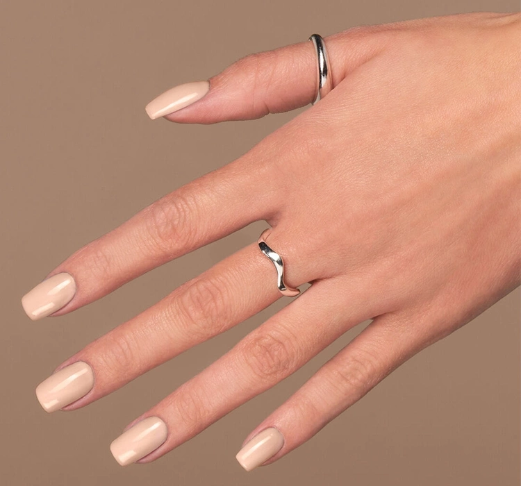 Eine dünne Schicht Semilac Color auf die ausgehärtete Schicht von Semilac Base auftragen, danach in der UV- Lampe aushärten. Zum Schluss ein Semilac Top auftragen.