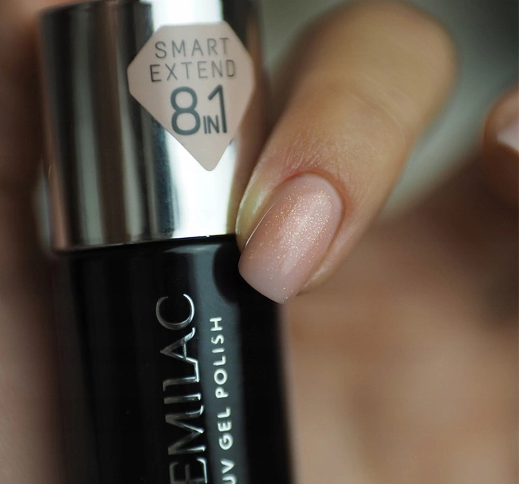 Mehrzweck-Hybridlack 8in1 Semilac Smart Extend 804 Glitter Soft Beige gleicht die natürliche Nagelplatte effektiv aus, kaschiert kleine Unebenheiten und Unvollkommenheiten. Dadurch schafft er die perfekte Grundlage für weiteres Design und verstärkt die Tiefe und Intensität der Endfarbe. Die farbige Basis Semilac Smart Extend 8in1 kann sowohl allein für ein sanftes, natürliches Aussehen verwendet werden, als auch als Grundlage für weitere Hybridprodukte – sei es Farbe, klassisches French oder modische Baby Boomer- oder dekorative Topcoats, die den Nägeln einen besonderen Charakter verleihen.