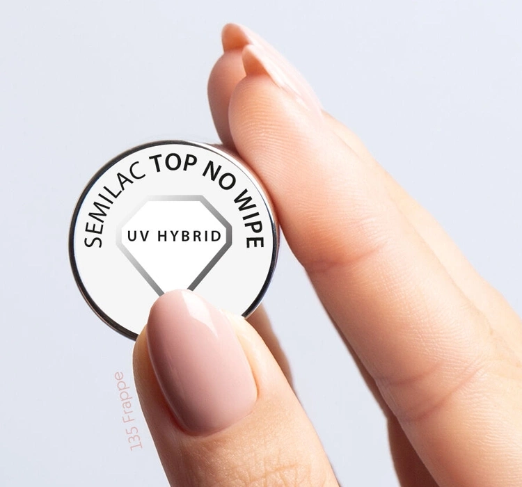 Semilac UV Hybrid Top No Wipe ist ein Top für Hybridlacke, bei denen die Dispersionsschicht nach dem Aushärten nicht gewaschen werden muss!
