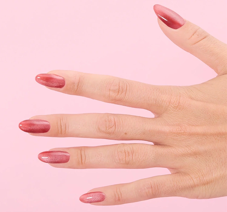 Trage eine dünne Schicht des Lacks auf die ausgehärtete Schicht der UV-Hybridbasis auf und härte sie anschließend unter einer UV/LED-Lampe aus. Nicht direkt auf die Nagelplatte auftragen. Wiederhole die Anwendung, um die gewünschte Farbintensität zu erzielen. Beende das Styling, indem du deinen Lieblings-Top aufträgst und aushärtest.