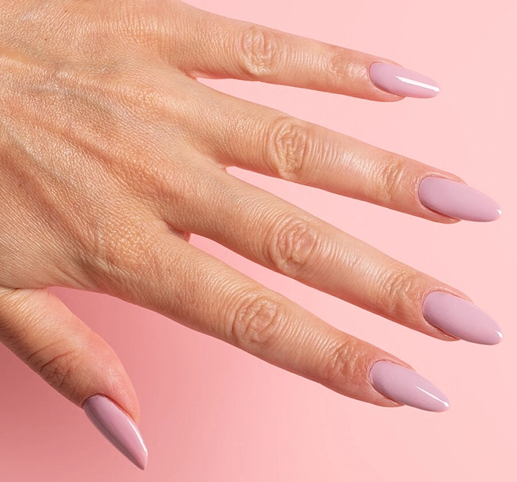 Eine dünne Schicht des Lackes auf eine ausgehärtete Schicht der Hybrid-Basis auftragen, anschließend unter einer UV/LED-Lampe aushärten. Nicht direkt auf die Nagelplatte auftragen. Wiederhole die Anwendung bei Bedarf für ein intensiveres Ergebnis. Schließe das Styling mit einem ausgehärteten Hybrid-Topcoat ab.