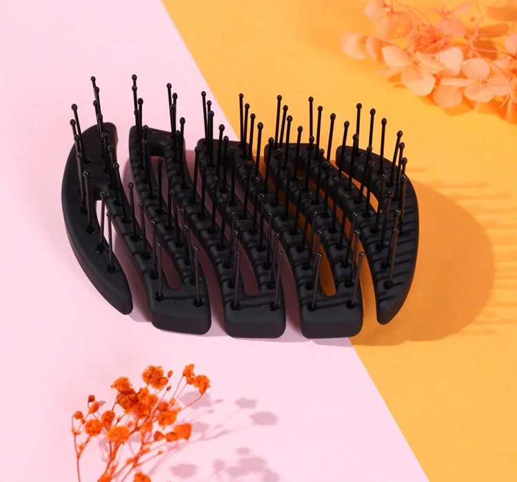 Die kleine Haarbürste MILA BV Black Pocket Sister Young ist mit gemischten Borsten ausgestattet. Natürliche Wildschweinborsten glätten die Strähnen sanft und verleihen ihnen einen natürlichen Glanz. Die nylonenen Spitzen mit weichen, massierenden Enden entwirren selbst die am stärksten verfilzten Haare, wodurch dieses Modell sowohl für feines als auch für dickes oder lockiges Haar geeignet ist.