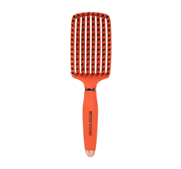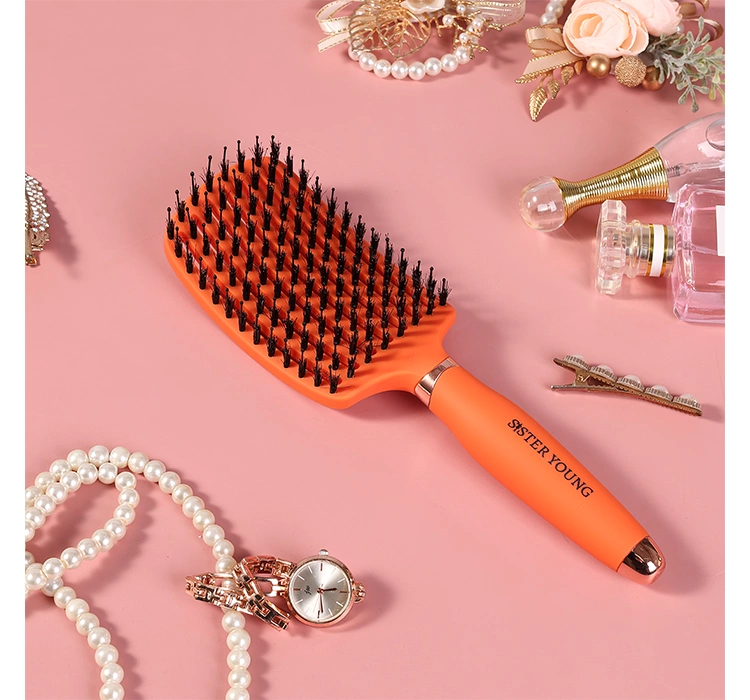Die Sister Young OVIA BV Bürste zum Entwirren, Stylen und Modellieren von Haaren ist mit einer Mischung aus Nylon- und Wildschweinborsten ausgestattet. Diese Kombination verleiht dem Haar Glanz und Volumen. Darüber hinaus hat die Bürste antistatische Eigenschaften, wodurch das Haar nicht kraus wird oder sich statisch auflädt, und die abgerundeten Enden der Nylonborsten verhindern Irritationen der Kopfhaut und Schäden an der Haarstruktur.