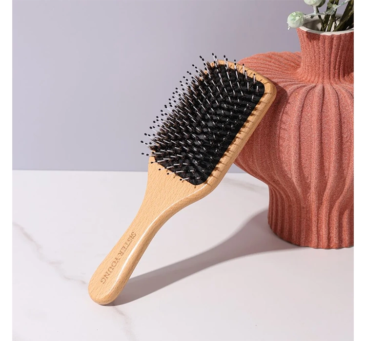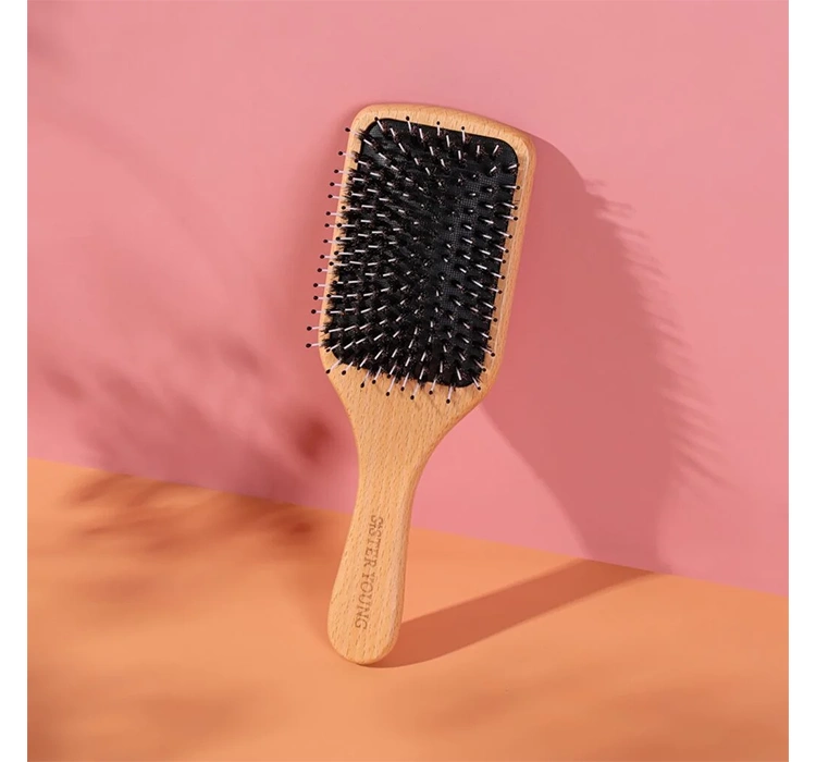 Der bequeme, ergonomische Griff der Sister Young Vera Bürste besteht aus Holz. Dieses Material liegt gut in der Hand und ermöglicht präzises Entwirren und Stylen. Die abgerundeten Kanten der Bürste erhöhen zusätzlich den Komfort bei der Anwendung und minimieren das Risiko einer versehentlichen Reizung der Kopfhaut.