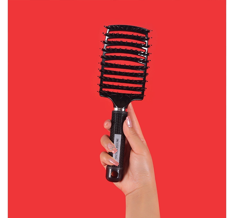 Die Sister Young ZOCO Bürste zum Entwirren, Stylen und Modellieren von Haaren ist mit einer Mischung aus Nylon- und Wildschweinborsten ausgestattet. Diese Kombination verleiht dem Haar Glanz und Volumen. Darüber hinaus hat die ZOCO-Bürste antistatische Eigenschaften, wodurch das Haar nicht kraus wird oder sich statisch auflädt, und die abgerundeten Enden der Nylonborsten verhindern Irritationen der Kopfhaut und Schäden an der Haarstruktur.